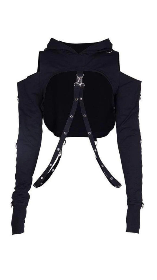 Punk Suspender Black Cropped Hoodies