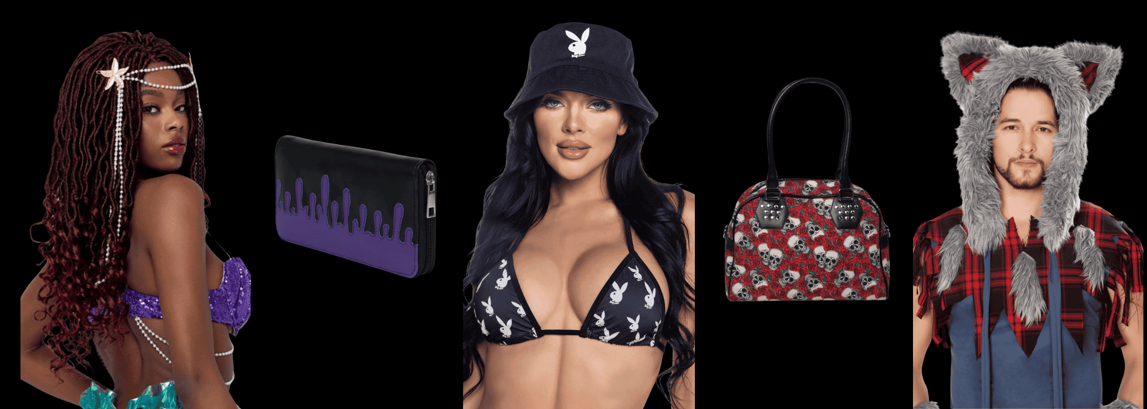 Introducing our Accessories Collection, featuring handpicked costume must-haves from Naughty Kitten, Playboy, and Roma, USA. From stockings and petticoats to wings, hats, and headbands, elevate any look for parties, cosplay, or Halloween with statement-making flair.