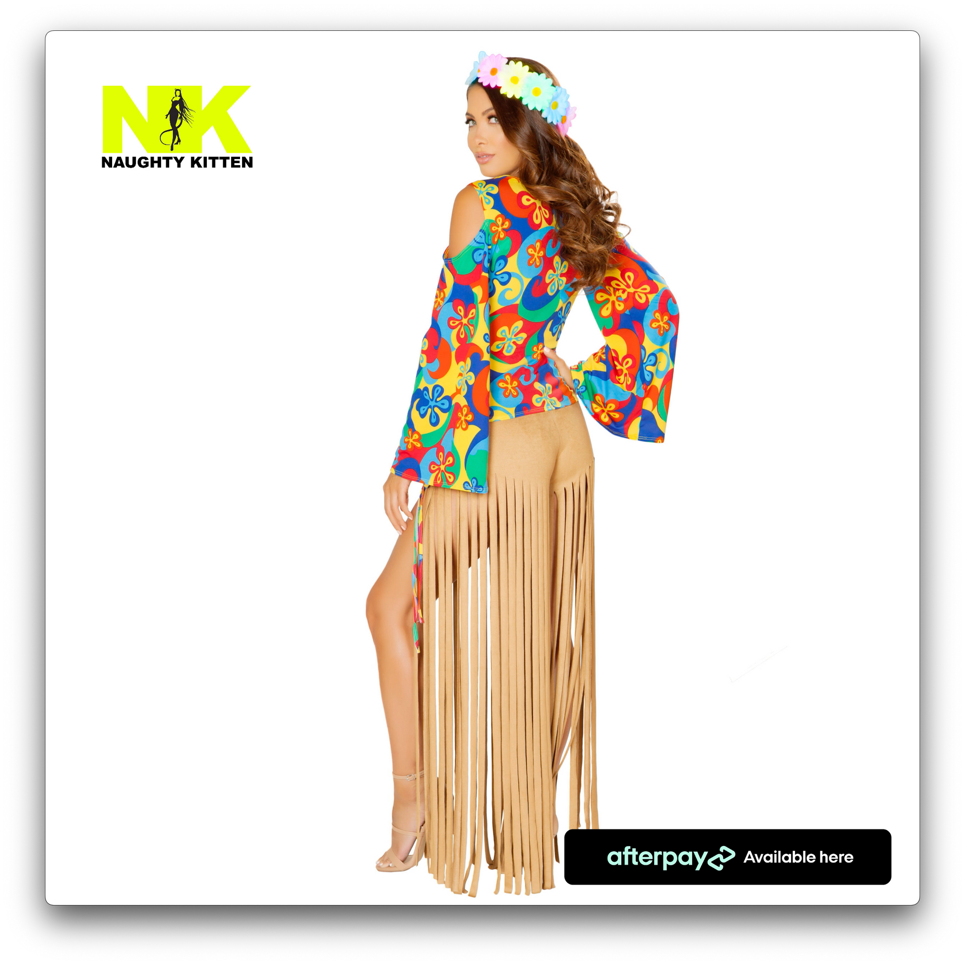 This costume is intended for adults who love to have fun and express themselves through fashion. Whether you're looking to embrace your inner hippie or simply want to stand out at your next costume party, the Hippie Princess Costume is the perfect choice. So, add this costume to your cart today and get ready to unleash your inner hippie! Shop now at Naughty Kitten, the best online costume store for cosplay, Halloween costumes, and fancy dress parties!