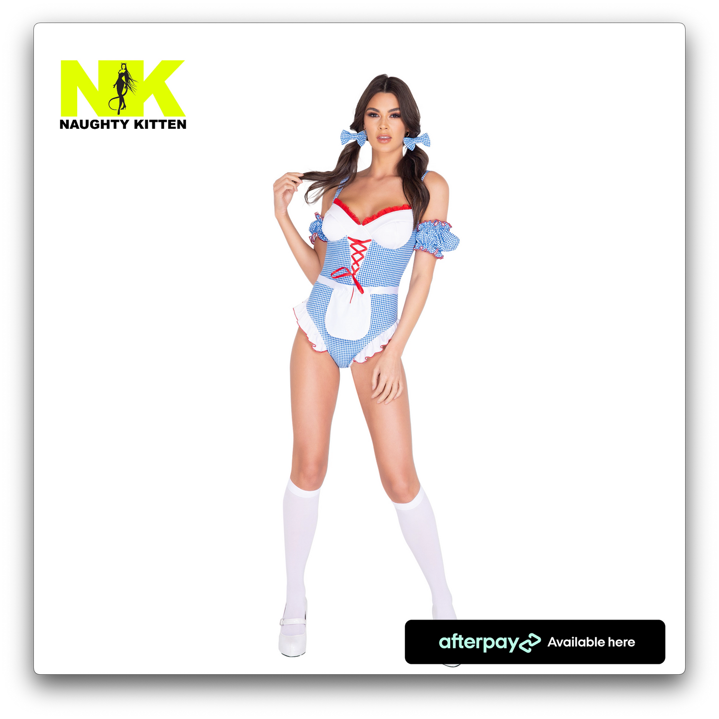 Introducing the Gingham Kansas Girl Costume - the perfect addition to your Halloween costume collection! Naughty Kitten is proud to offer the official genuine Roma Costumes range for our customers direct from the U.S.A. Transform yourself into a classic storybook character with this sexy 4 piece costume set.