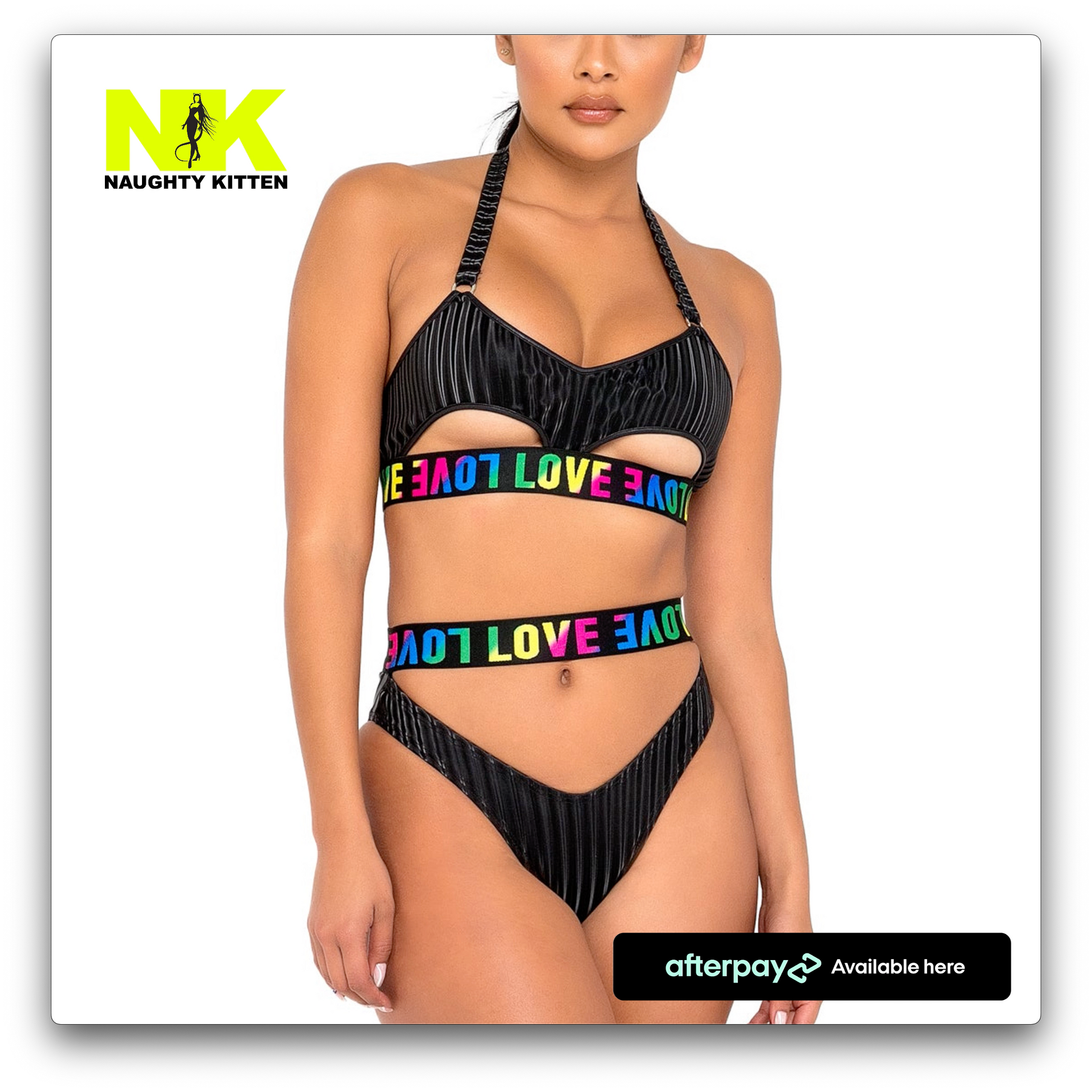 Naughty Kitten is excited to partner with the genuine Roma Rave Wear brand direct from the U.S.A. to our customers. Be creative and inspired by our extensive rave wear and festival fashion collections. Stand out in the crowd wearing the Pride High-Waisted Shorts with Cut Out Panel at any event or occasion. The Pride High-Waisted Shorts with Cut Out Panel includes: Pride High-Waisted Shorts with Cut Out Panel and LOVE Elastic Logo.
