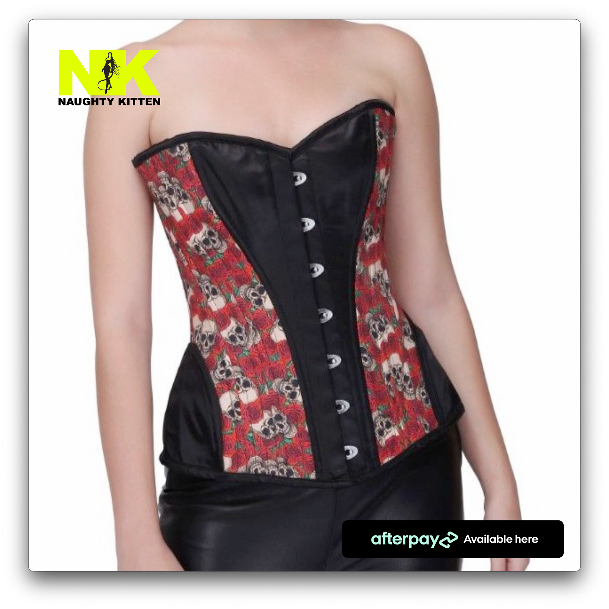 The Billie Skull Corset is custom made upon ordering, so please allow for tailoring time of approximately 7-14 days before tracking and shipping details are sent. Naughty Kitten makes some of our premium corsets on demand for our customers. This ensures we can give attention to detail and provide superior quality corsets.