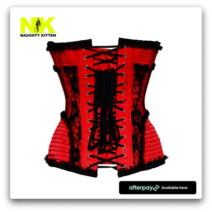 - Tailored Support and Style: Our Naughty Kitten Corsets are tailored to provide support and style, while also providing comfort and wearability. The Persephone Crucifix Corset is no exception, with 12 flat steel bones distributed all around the corset for the ultimate support and shaping.